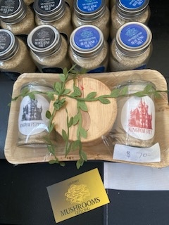 Gourmet mushroom products, smaller pack, gourmet mushroom blue salt and container