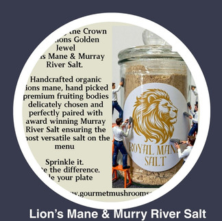 Hand crafted organic Lion's Mane, hand picked premium fruiting bodies delicately paired with award winning Murry River Salt, ensuring the most versatile salt on the menu.